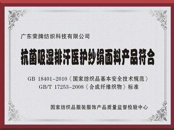 米兰·(milan)抗菌吸湿排汗医护纱绢面料产品符合国家标准